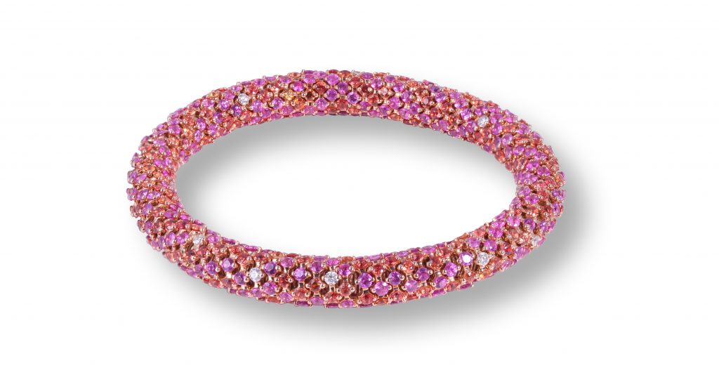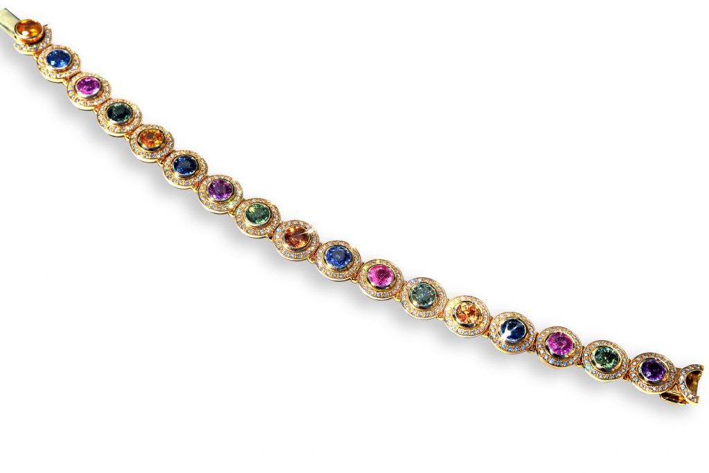 Bracelet „Wellness“ 750 YG,, pink, orange Saphires, Brill.