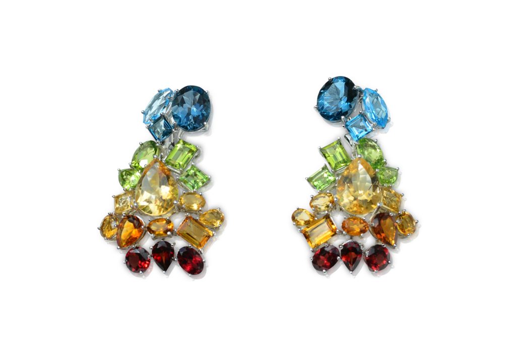 Earrings „Red Carpet1“ 750 WG, Topas, Peridots